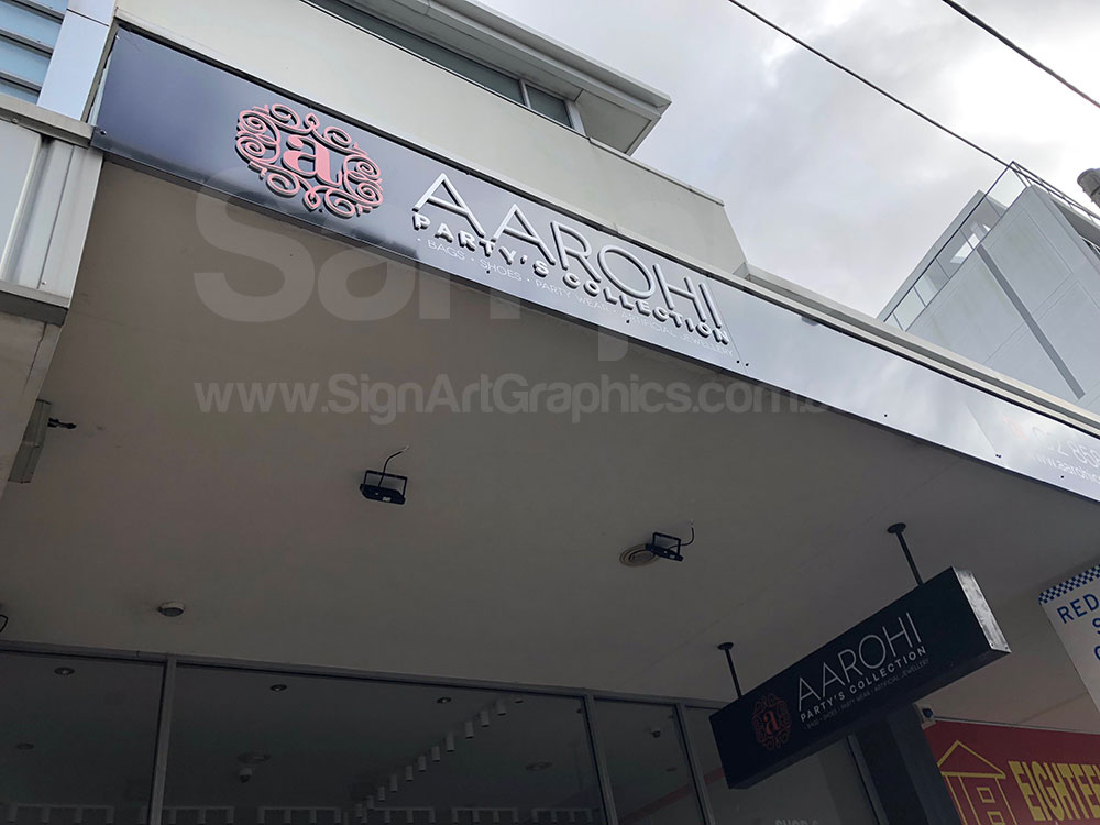 Awning Fascia Signs are widely used in the shop front. It is one of the most important places to advertise your business. It usually covers the awning of front building façade. The awnings signs are made of aluminum composite panel. It’s durable and has many colour options. You could display business logo & name, products, services, and any decorations or graphics on our custom awning signs to attract passing traffics. Your awning signs could be either full colour printed with UV and Water resistant ink, or computerized vinyl cut depends on customers’ needs. At Sign Art we have extensive experience in design and the ability to recommend best suitable signs / marketing solutions for customers within their budget.